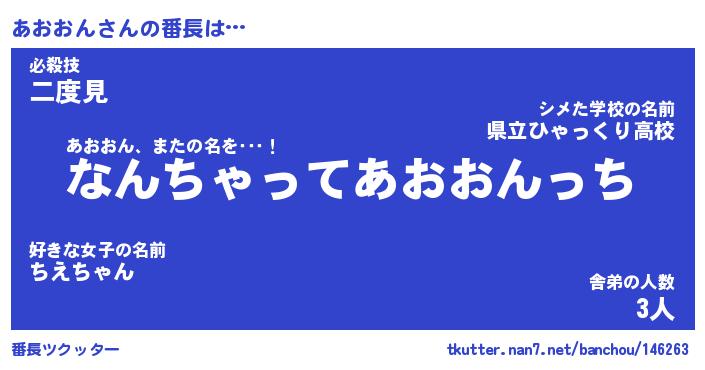 | 意味不明あだ名 | 『ペロリンあおおん』『永久保存あおおん』 |