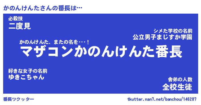 | ヒーロー風カッコイイあだ名 | 『スーパーカノンケンタ』『炎刃騎士カノ』 |