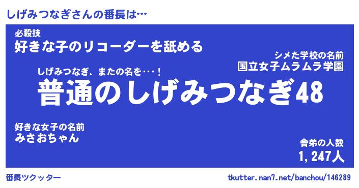 | 意味不明あだ名 | 『ペロリンしげみつなぎ』 |