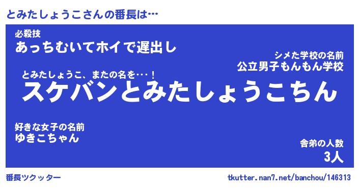 | 伝説のあだ名 | 『不死鳥のスナイパーとみたしょうこ』 |