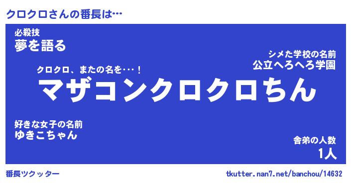 | 2回繰り返すあだ名 | 『クロクロ』『ククロロ』『いらいら』 |