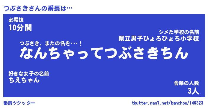 | ファンタジー風あだ名 | 『ツブフェル』『エターナルツブサキー』 |
