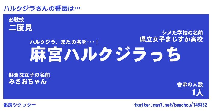 | ヒーロー風カッコイイあだ名 | 『スーパーハルクジラ』『黄金騎士ハル』 |