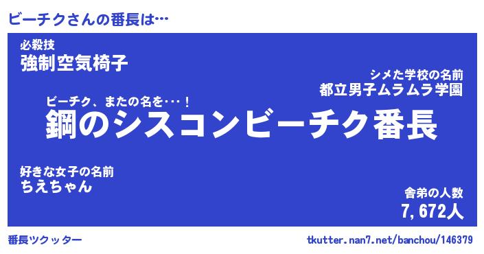 | ヒーロー風カッコイイあだ名 | 『スーパービーチク』『炎刃騎士ビー』 |