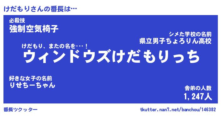 | ポケモン風あだ名 | 『ケダチュウ』『ケダモダネ』 |