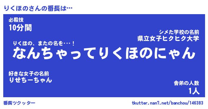 | 伝説のあだ名 | 『伝説のスナイパーりくほの』 |
