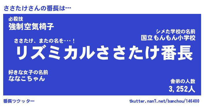 | ヒーロー風カッコイイあだ名 | 『スーパーササタケ』『黄金騎士ササ』 |