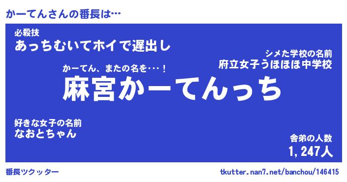 | 意味不明あだ名 | 『ペロリンかーてん』『永久保存かーてん』 |