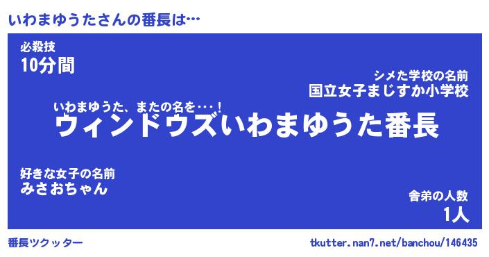 | 恥ずかしいあだ名 | 『プリティーいわまゆうた』『いわっちょ』 |