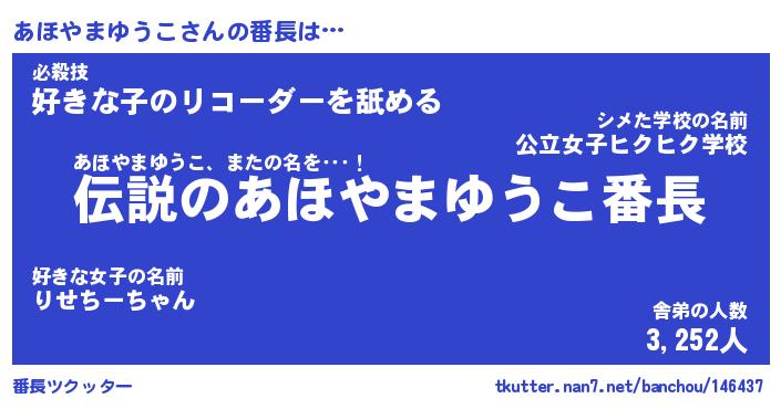 | 肩書あだ名 | 『あほやまゆうこ店長』 |