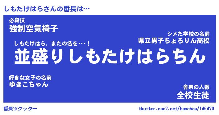 | ポケモン風あだ名 | 『シモチュウ』『シモタダネ』 |