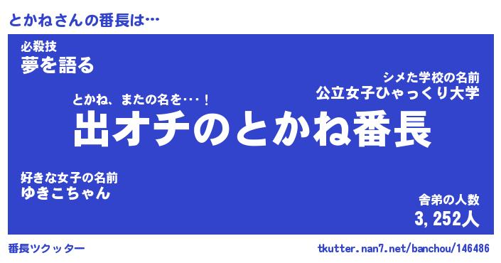 ヘコむあだ名 | 『とかふぇ~』『豆乳』『とかっちょ』 |