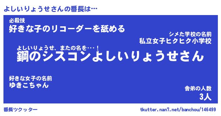 | ツイッター | よしいりょうせさんのツイッターID『namakemono_kun』 |