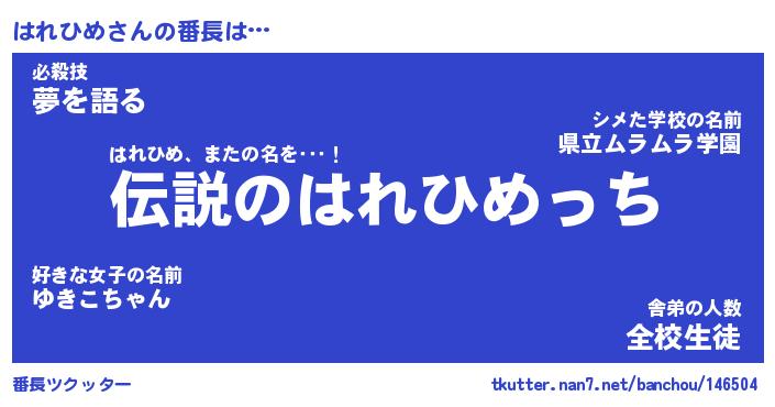 | ファンタジー風あだ名 | 『ハレフェル』『エターナルハレヒメー』 |