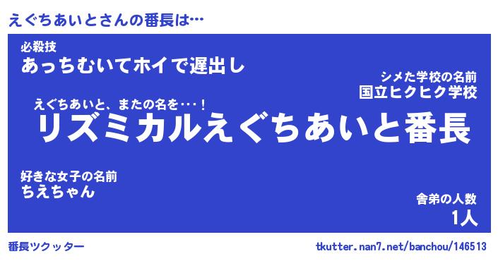 | 2回繰り返すあだ名 | 『えぐえぐ』『ええぐぐ』『いらいら』 |