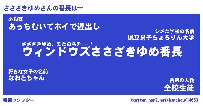 | 意味不明あだ名 | 『ペロリンささざきゆめ』 |