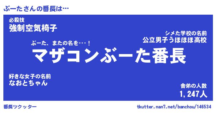 | ヘコむあだ名 | 『ぶーもー』『なまこ酢』『ぶーっぺ』 |