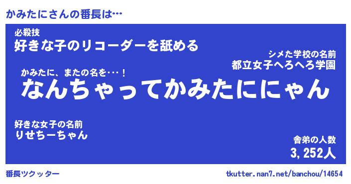 | 意味不明あだ名 | 『ペロリンかみたに』『永久保存かみたに』 |