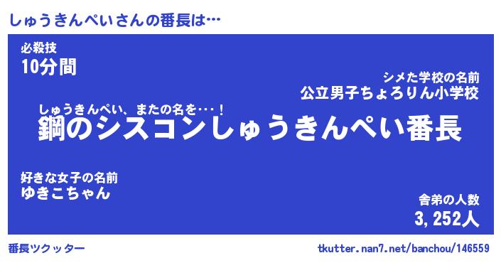 | 伝説のあだ名 | 『封印されしスナイパーしゅうきんぺい』 |