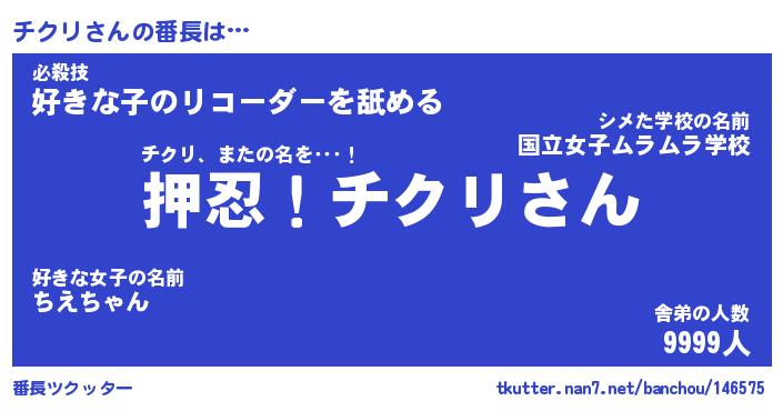 | ヒーロー風カッコイイあだ名 | 『スーパーチクリ』『ウルトラチクリマン』 |
