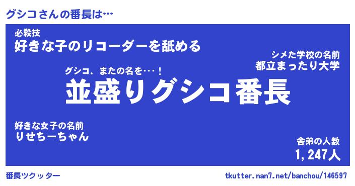 | 意味不明あだ名 | 『ペロリングシコ』『グシコフォーエバー』 |