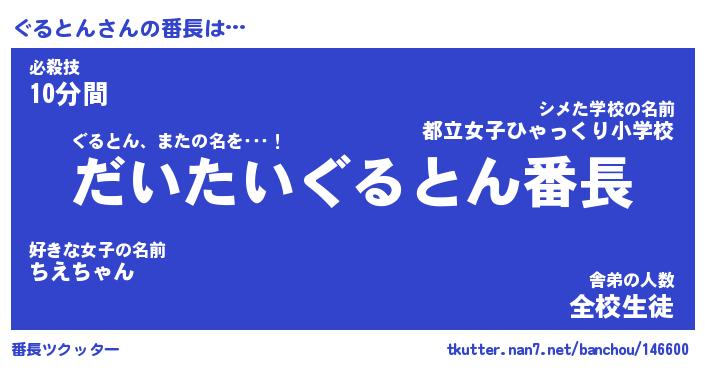 | 男性向けラノベタイトル風あだ名 | 『ぐるとんの憂鬱』 |