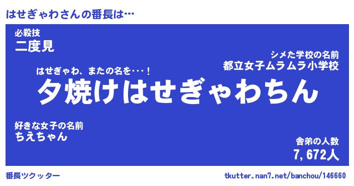 | 肩書あだ名 | 『はせぎゃわ社長令嬢』『はせぎゃわ班長』 |