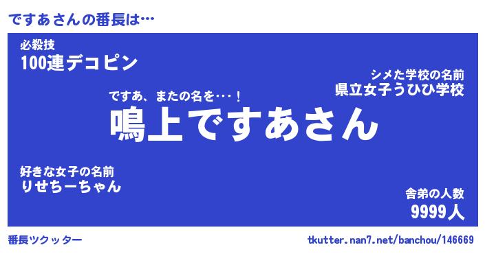 | ヘコむあだ名 | 『ですふぇ~』『つくし』『です太郎』 |