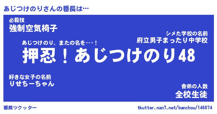 | ヒーロー風カッコイイあだ名 | 『スーパーアジツケノリ』『暗黒騎士アジ』 |