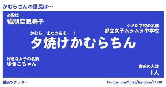 | 意味不明あだ名 | 『ペロリンかむら』『かむらフォーエバー』 |