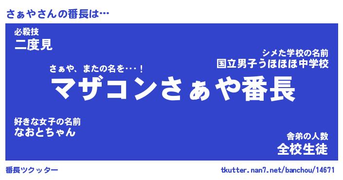 | ポケモン風あだ名 | 『サァチュウ』『サァヤダネ』 |
