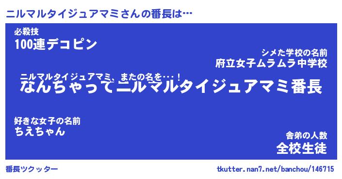 | ヒーロー風カッコイイあだ名 | 『スーパーニルマルタイジュアマミ』 |