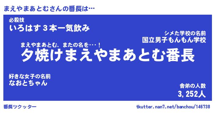 | 肩書あだ名 | 『まえやまあとむ御曹司』 |
