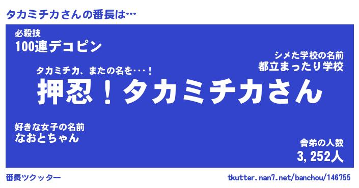 | 肩書あだ名 | 『タカミチカ店長』『タカミチカ総理大臣』 |