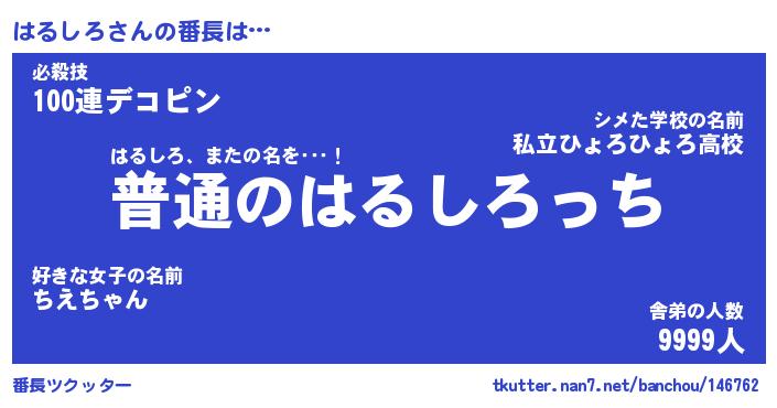 | ファンタジー風あだ名 | 『ハルフェル』『エターナルハルシロー』 |