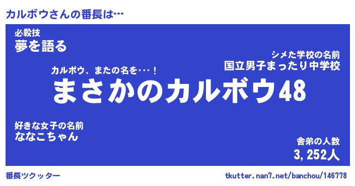 | 意味不明あだ名 | 『ペロリンカルボウ』『永久保存カルボウ』 |