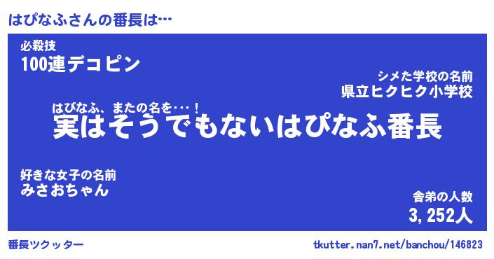 | 意味不明あだ名 | 『ペロリンはぴなふ』『永久保存はぴなふ』 |