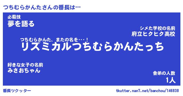 | 男性向けラノベタイトル風あだ名 | 『つちむらかんたの憂鬱』 |