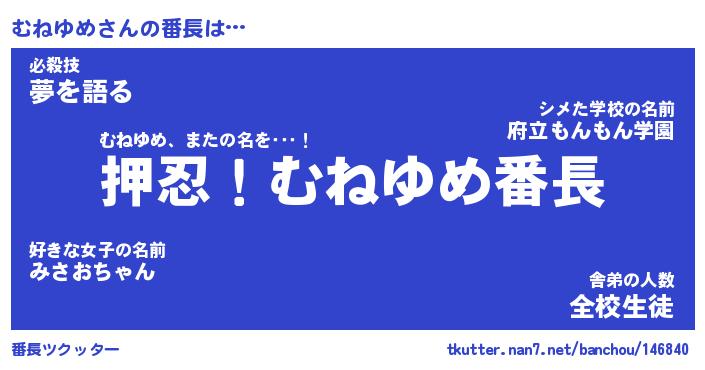 | 肩書あだ名 | 『むねゆめ店長』『むねゆめ大統領』 |