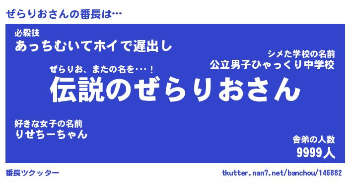 | 伝説のあだ名 | 『伝説のスナイパーぜらりお』 |