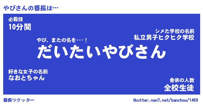 | ヒーロー風カッコイイあだ名 | 『スーパーヤビ』『ウルトラやびマン』 |