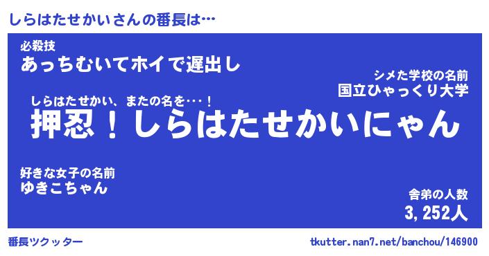 | 意味不明あだ名 | 『ペロリンしらはたせかい』 |