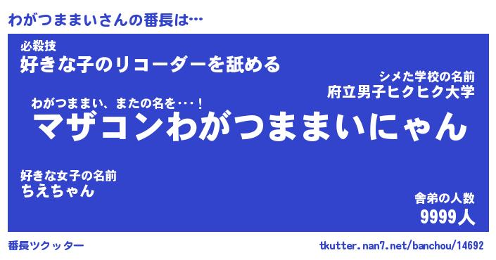 | 伝説のあだ名 | 『封印されしスナイパーわがつままい』 |