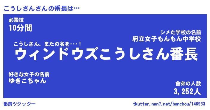 | 伝説のあだ名 | 『伝説のスナイパーこうしさん』 |