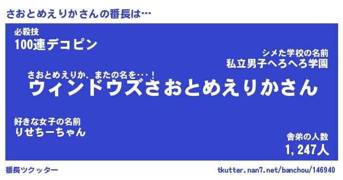 | 伝説のあだ名 | 『伝説のスナイパーさおとめえりか』 |