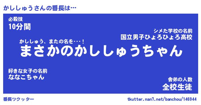 | ヒーロー風カッコイイあだ名 | 『スーパーカシシュウ』『銀牙騎士カシ』 |