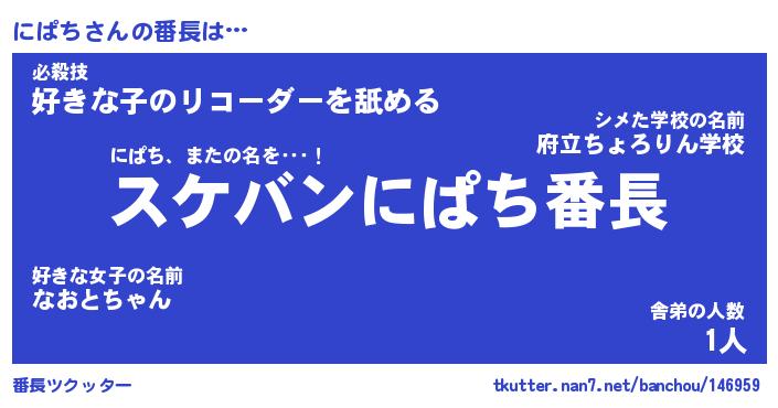 | ヒーロー風カッコイイあだ名 | 『スーパーニパチ』『ウルトラにぱちマン』 |