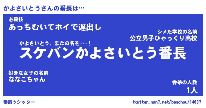 | ヒーロー風カッコイイあだ名 | 『スーパーカヨサイトウ』『黄金騎士カヨ』 |