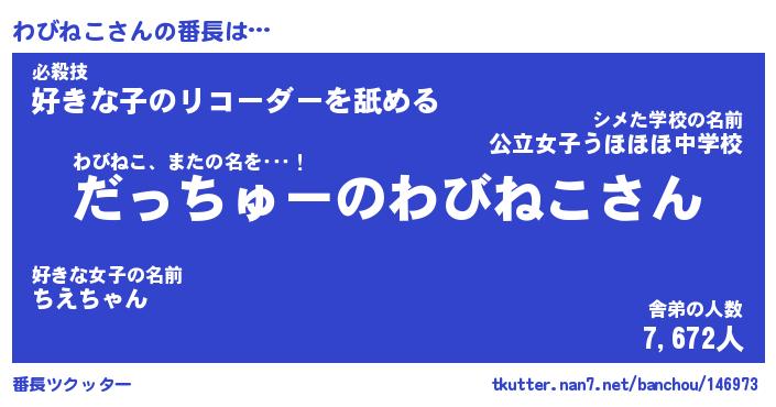 | 伝説のあだ名 | 『伝説のスナイパーわびねこ』 |