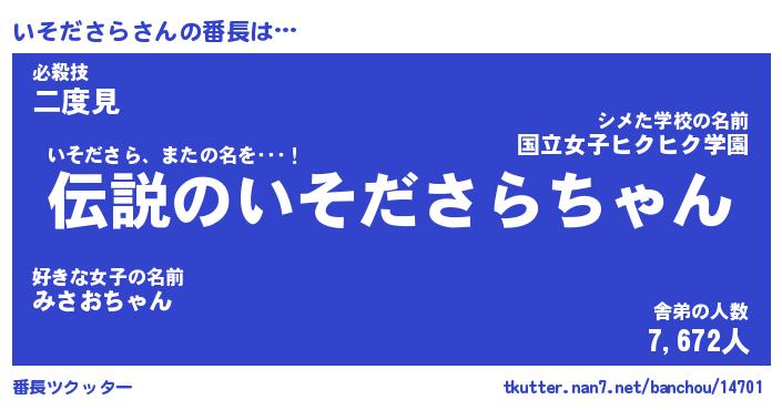 | ポケモン風あだ名 | 『イソチュウ』『イソダダネ』 |
